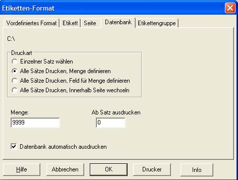 FormCoder kann auch als Automations-Server für eine andere Applikation eingesetzt werden: Die erste Möglichkeit ist die komplett-automatische Version: Die Datenbank muss im Format-Fenster des Etikettes